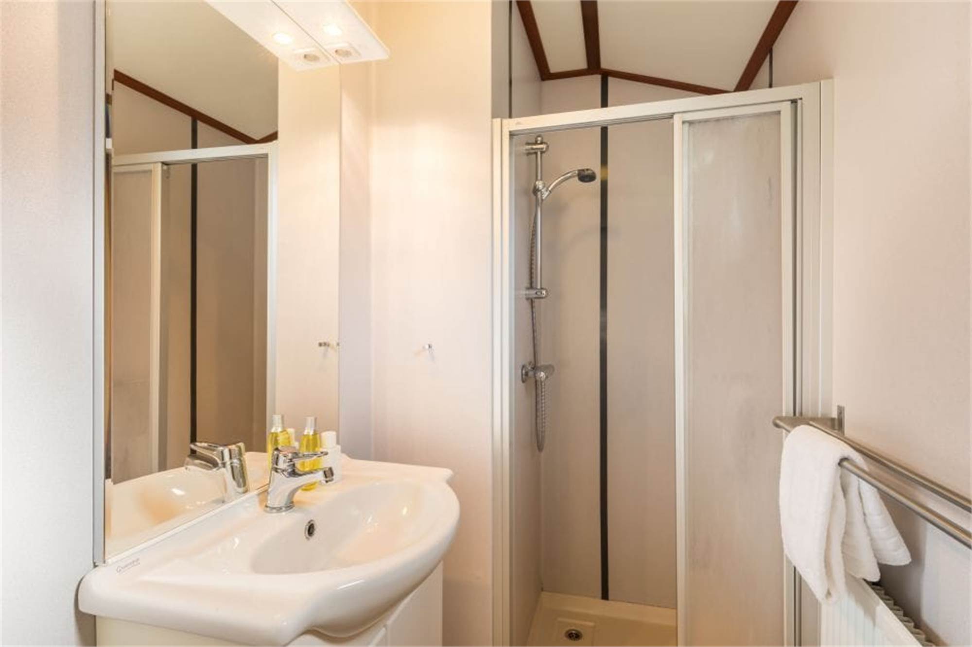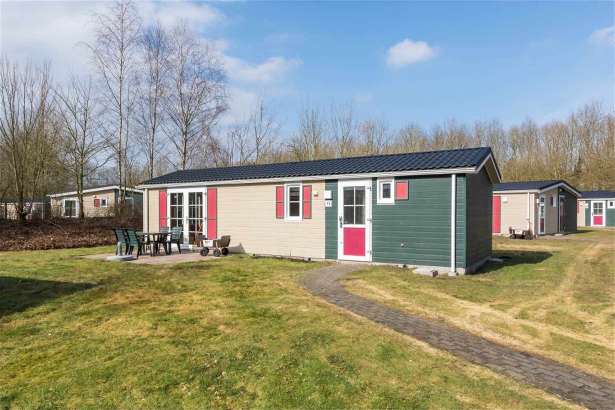 This child-friendly, detached chalet is suitable for 4 adults and 1 child. The living room has a separate dining area and in the kitchen you will find a combination microwave and coffee machine among other things. In addition, there are 2 bedrooms with 2 single box spring beds and a bathroom with shower and a separate toilet. The chalet is also equipped with a cot and high chair and the wall sockets are shielded. In addition, there is a furnished terrace and free Wi-Fi is available.