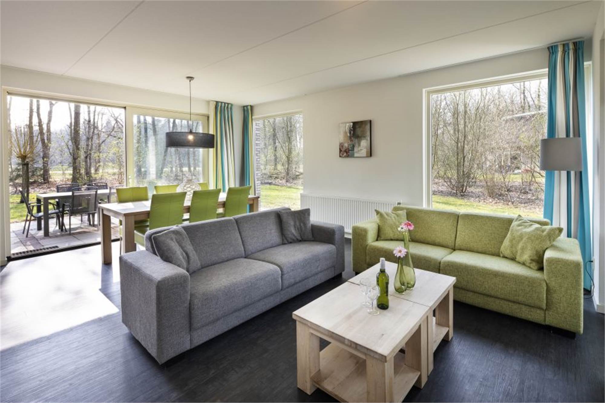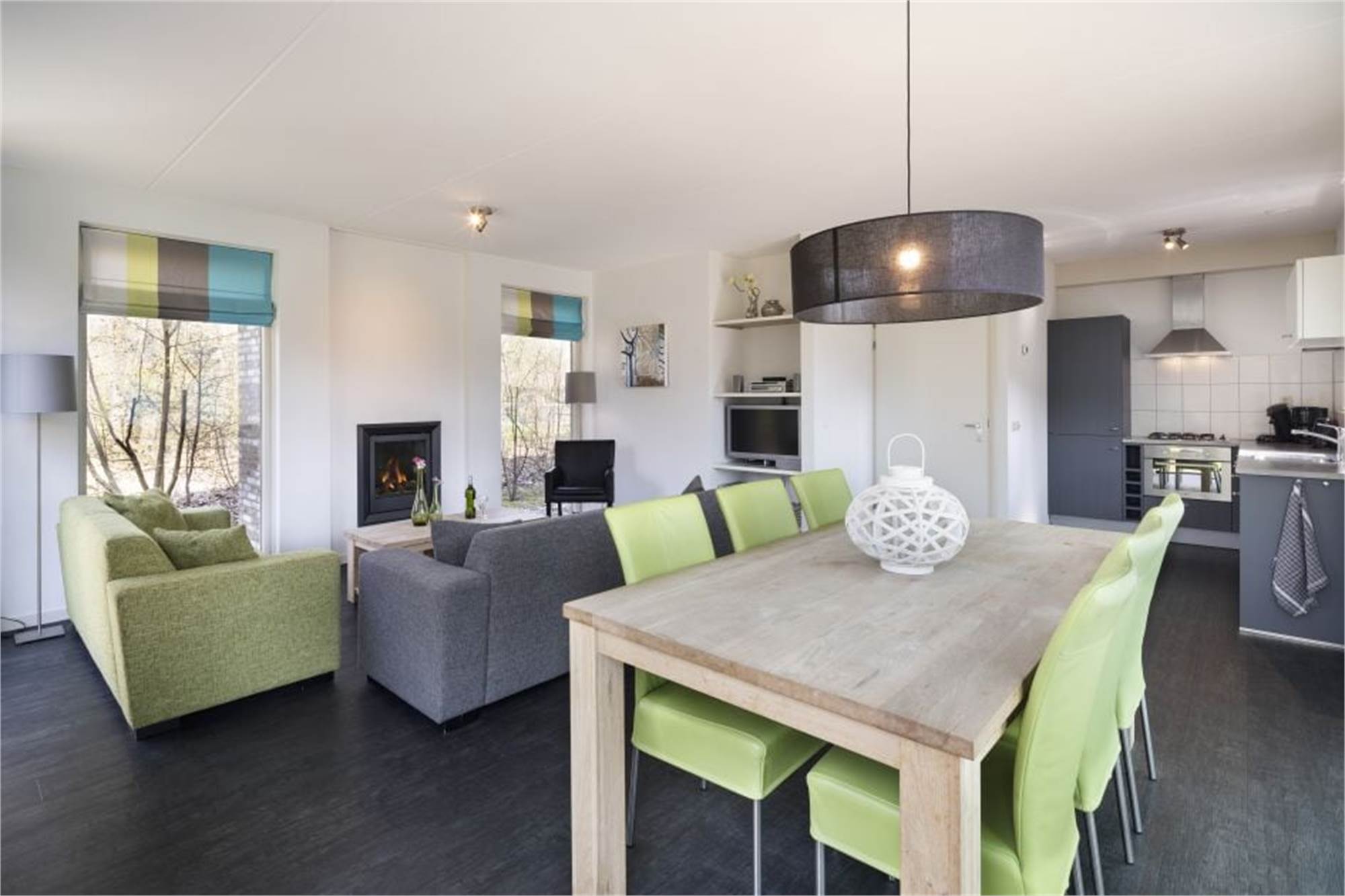 This detached villa can accommodate 4 people. There is a living room with a fireplace, and the kitchen is equipped with a dishwasher, a combination microwave, a fridge and a filter coffee machine. There are also 2 bedrooms, both with 2 single box spring beds. The bathroom upstairs has a toilet, a bathtub and there is a separate shower. There is a another toilet downstairs. Outside, there is a terrace with garden furniture and there is parking at the holiday home. You can use free Wi-Fi.