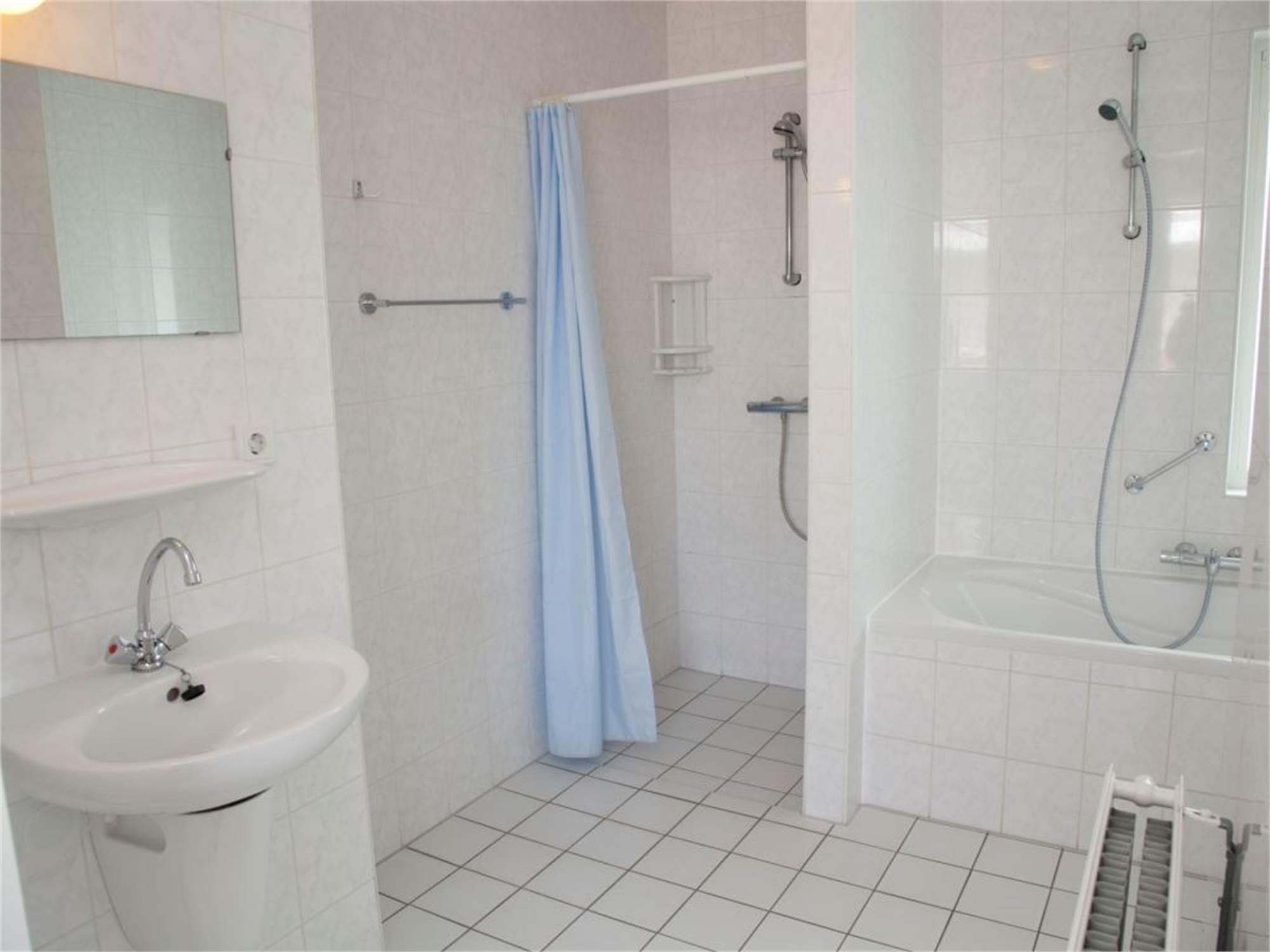 Bathroom with bathtub, shower cubicle, washbasin and toilet on the first floor