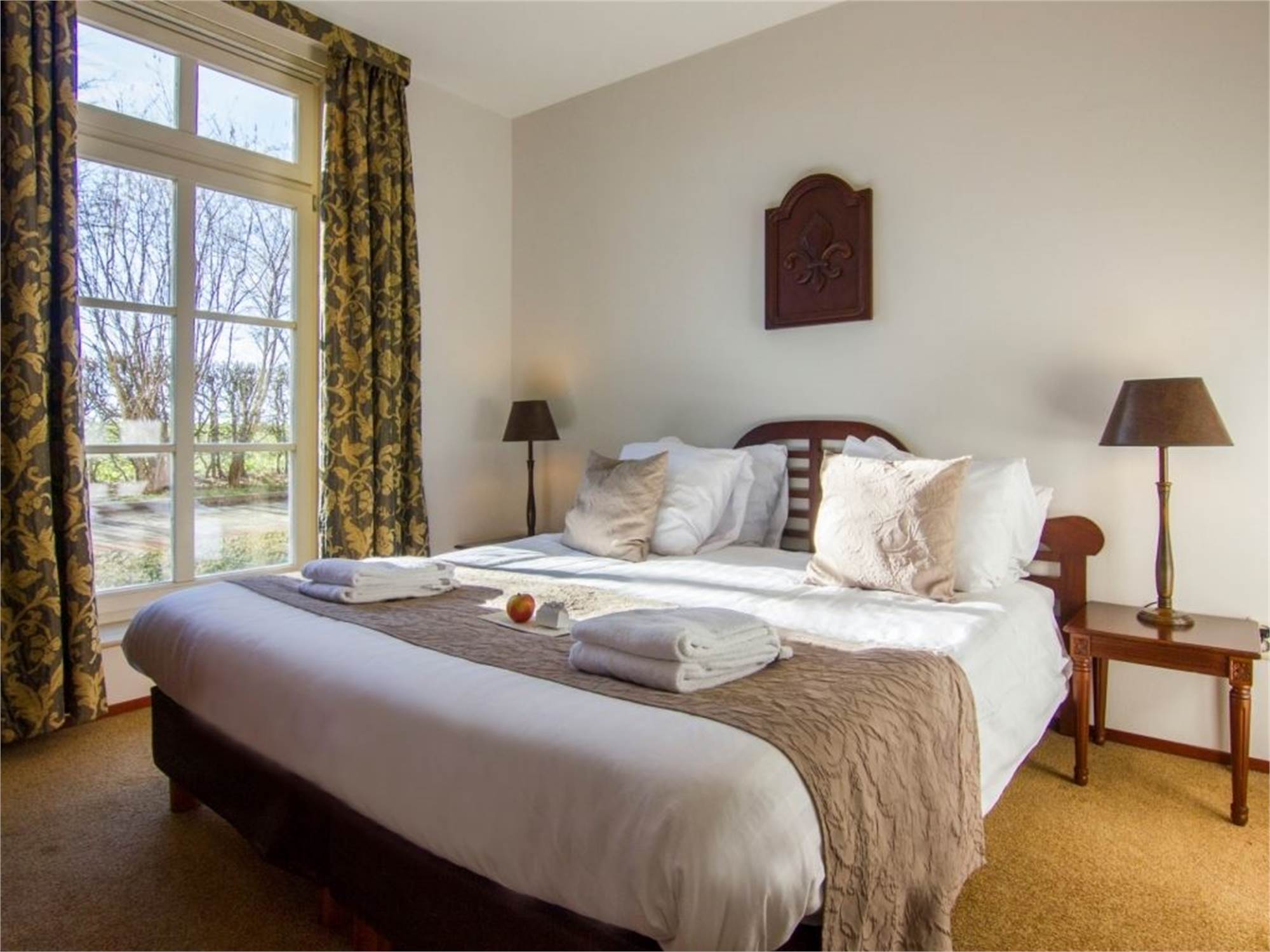 Beds provided with duvets and pillows