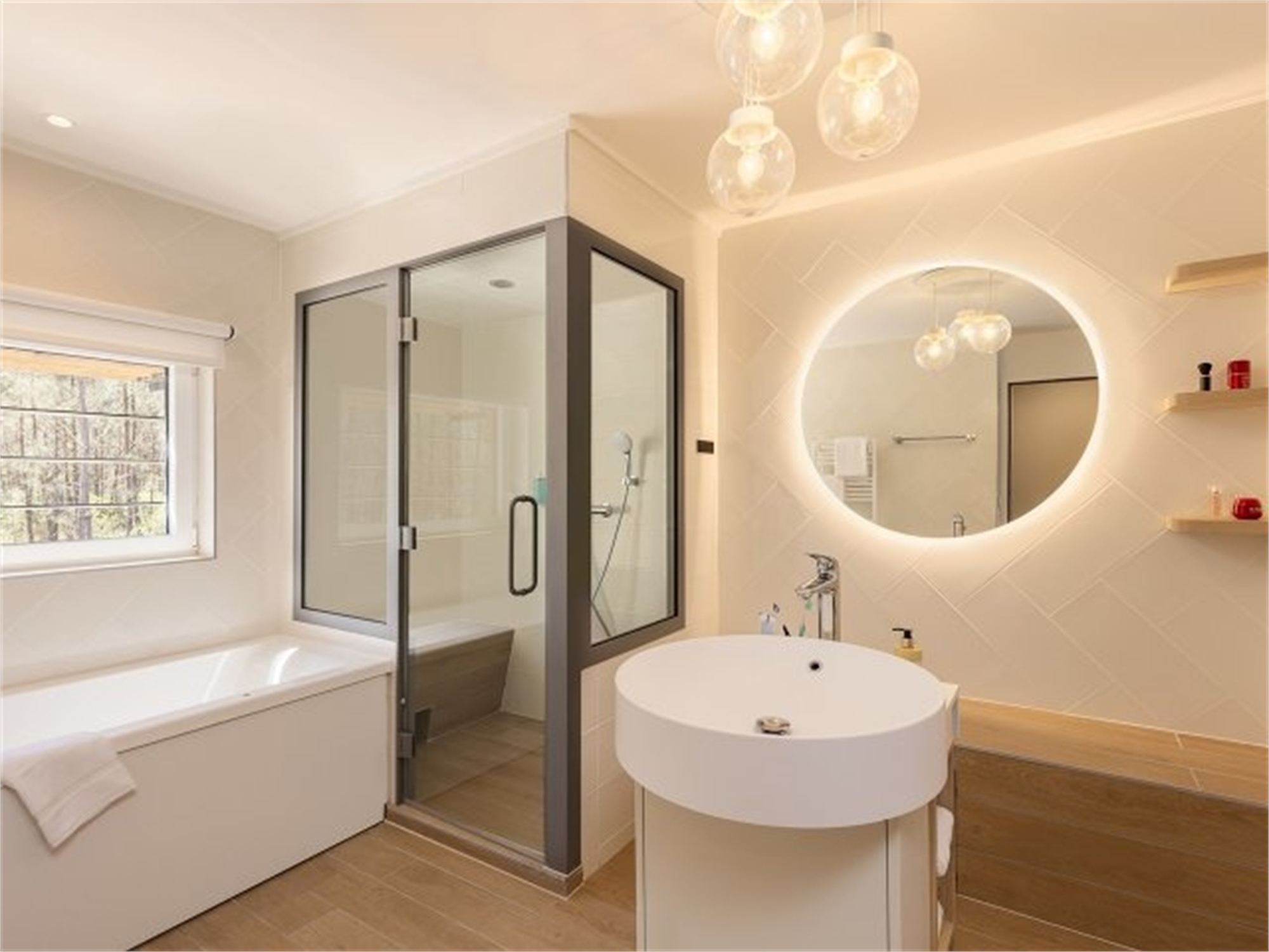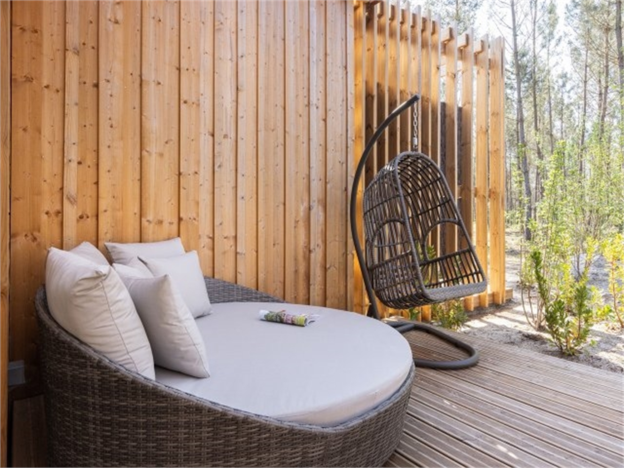 The spacious living rooms in the VIP cottage VIP have large bay windows overlooking a private patio and natural scenery. Enjoy the bathroom with the bubble bath and hammam, plus the range of exclusive welcome services.