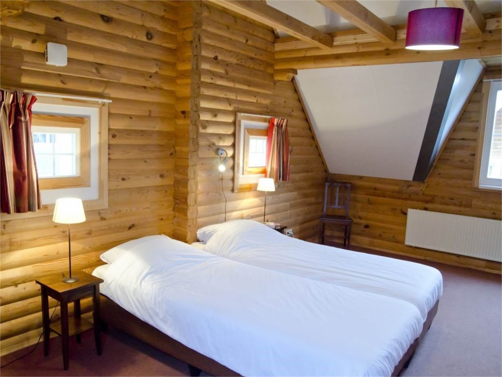 Bedroom with two single box spring beds