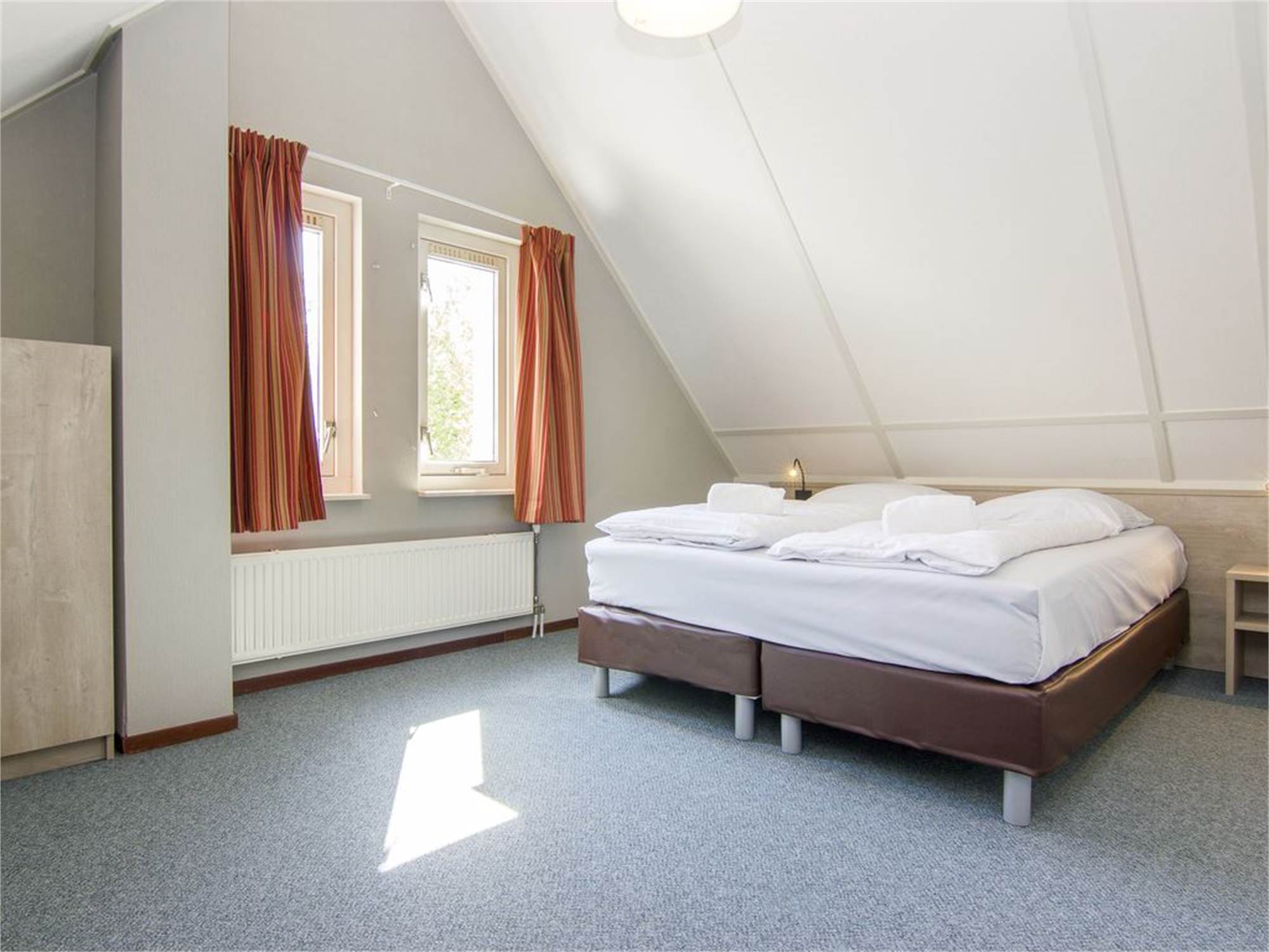 Bedroom with two single box spring beds on the first floor