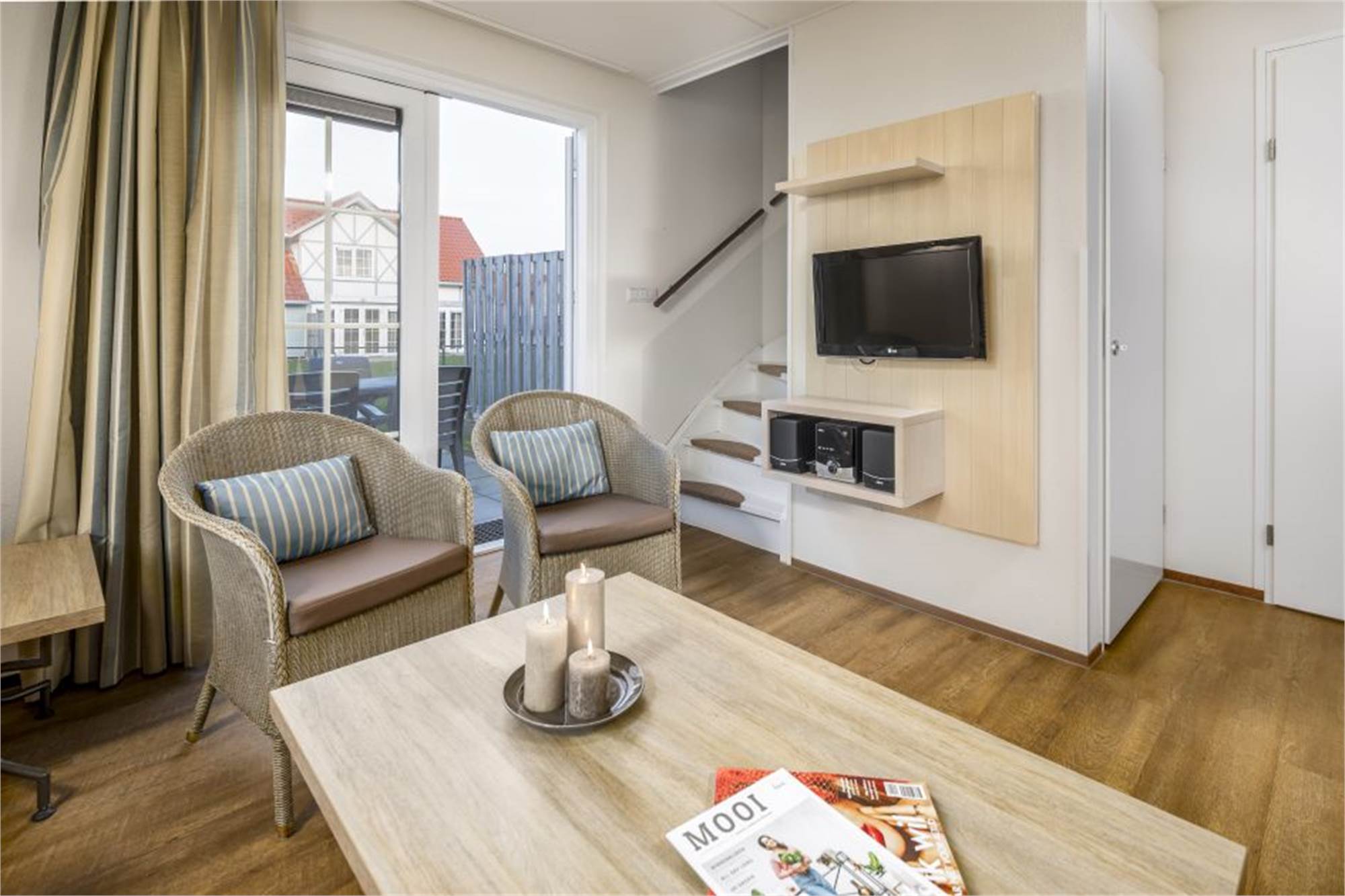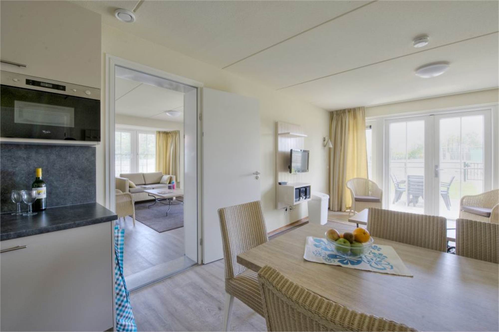 This bungalow has three camping beds (excl. Matrass), three high chairs, three playpens, three baby baths and a kids wagon, a stair gate, child-proof electrical outlets and a fenced garden. The use of Wi-Fi is free of charge.