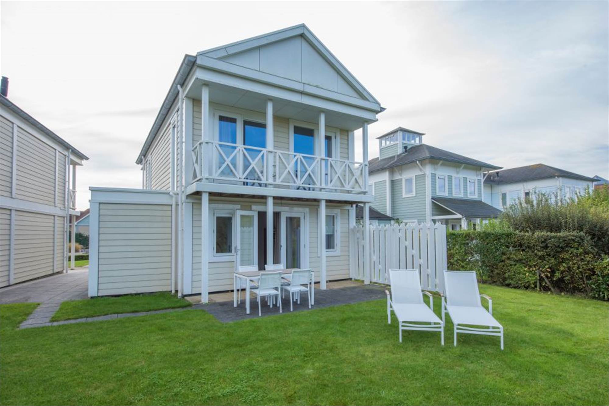 This redesigned villa is located right by the beach and can accommodate 4 persons. There’s a smart TV and underfloor heating in the living area, and the luxurious kitchen has a combination microwave and a dishwasher. There are three bedrooms (one with a television) and a bathroom with a whirlpool on the first floor. Additionally, it boasts a gorgeous balcony, a porch and a garden with sun loungers.