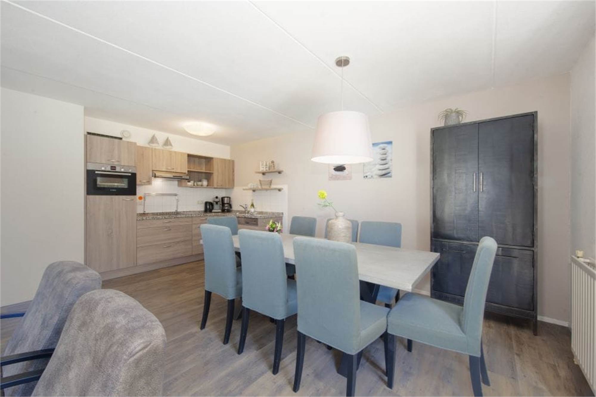 This semi-detached villa is suited for 8 persons. The living room has a separate dining corner and the open kitchen offers a microwave and filter coffee machine. There are 4 bedrooms, one of which is on the ground floor, with 2 box spring beds each. Both the ground floor and top floor have a bathroom and there is a separate toilet in the hallway. The villa also has a terrace with garden furniture and you can make free use of the Wi-Fi. There is parking space at the accommodation.