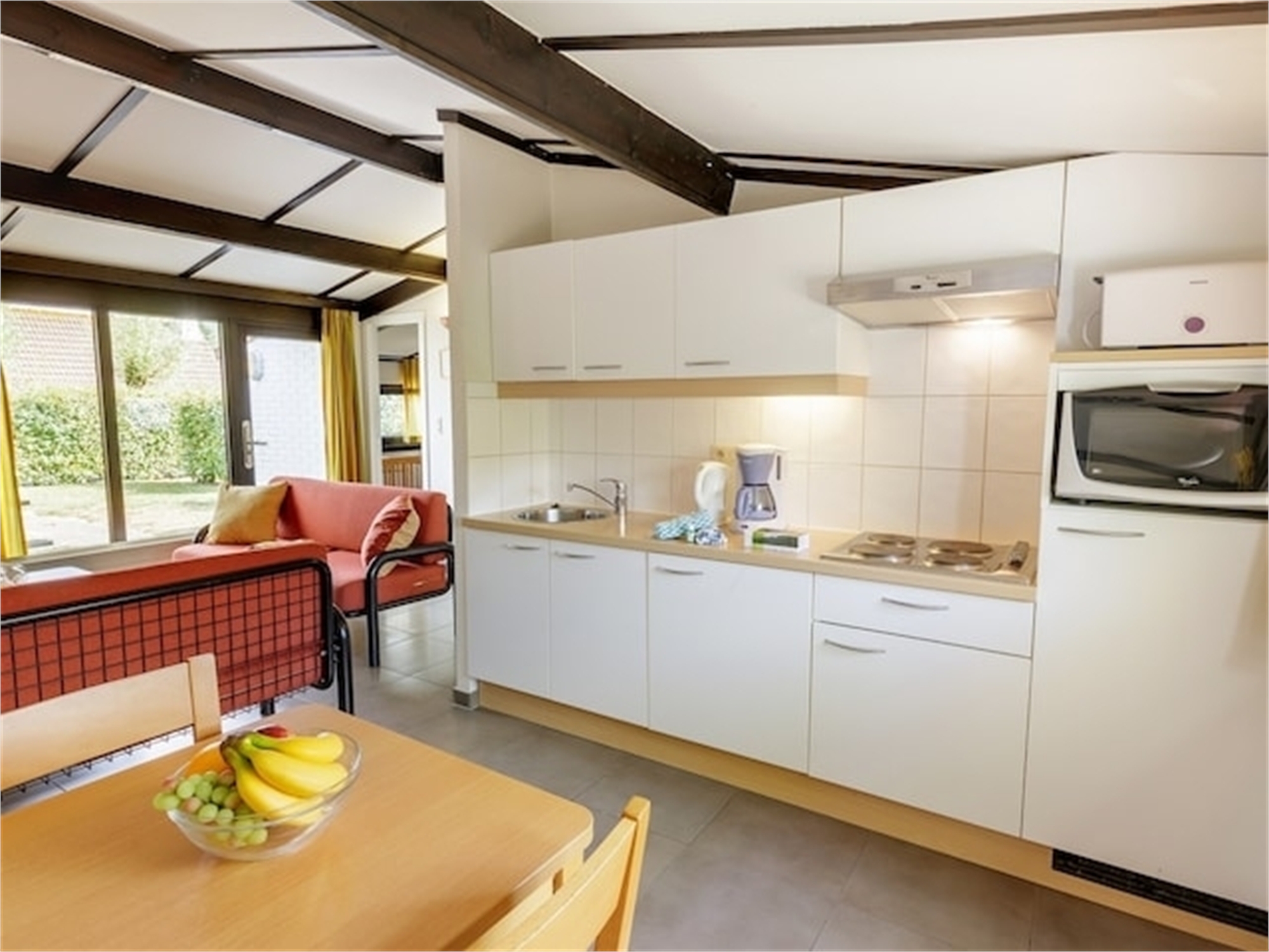 A Select holiday house offers you all the basic comfort you need during your holiday. The holiday houses have a comfortable living room with TV, a fully equipped kitchen, bathroom with bath and shower, bedrooms and a private garden with garden furniture. Comfort and simplicity are key.