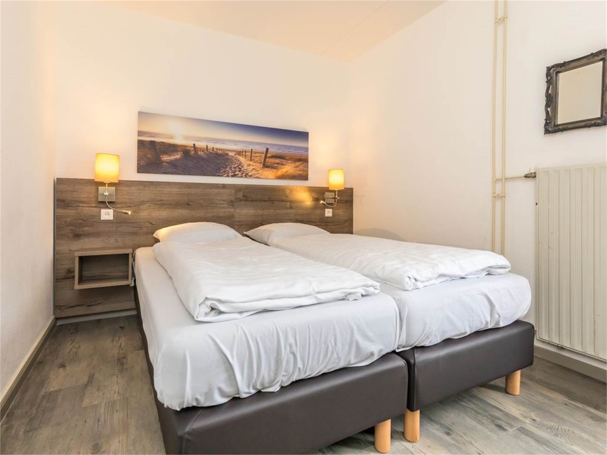 Bedroom with two single beds and soft mattress topper
