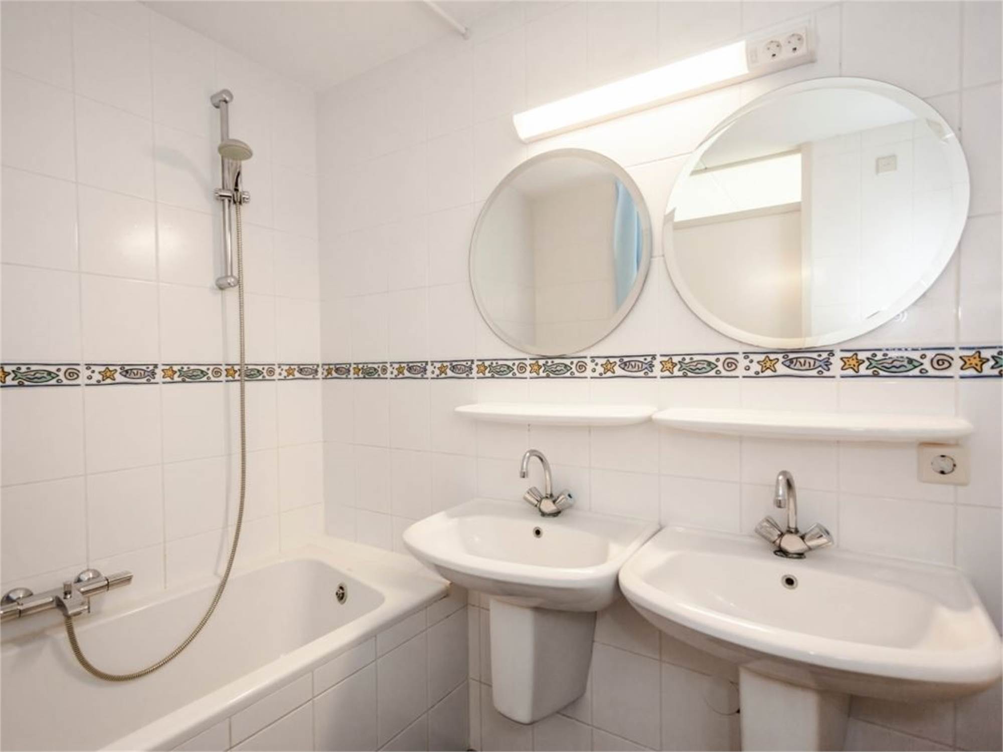 Bathroom with bathtub, double washbasin and toilet