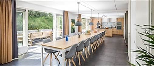 First floor: six bedrooms with two single box spring beds each. Three bathrooms, of which one features a rain shower, bubble bath and two washbasins, and the other two feature a rain shower, toilet and two washbasins. Separate toilet. Six-person traditional sauna.