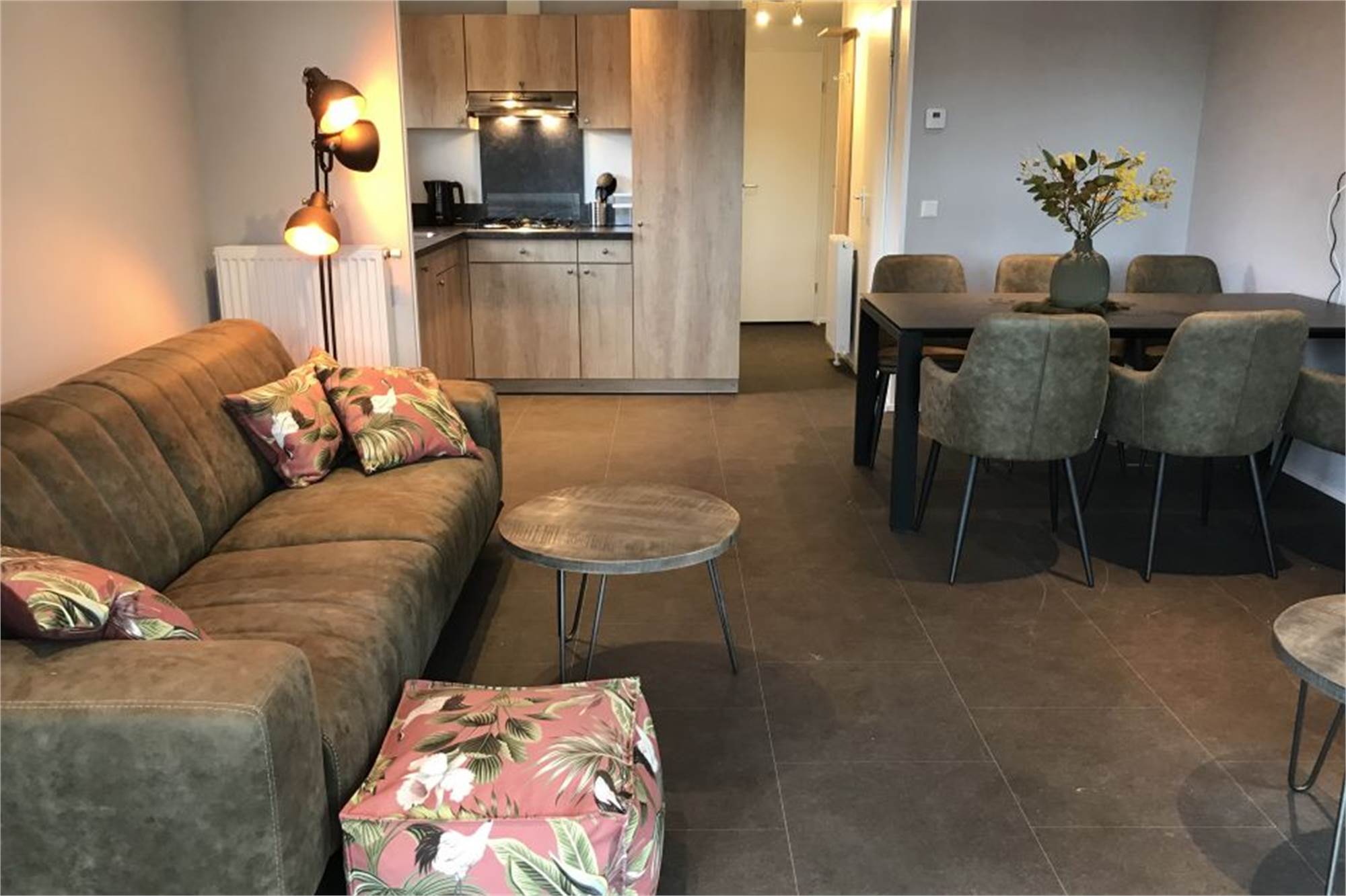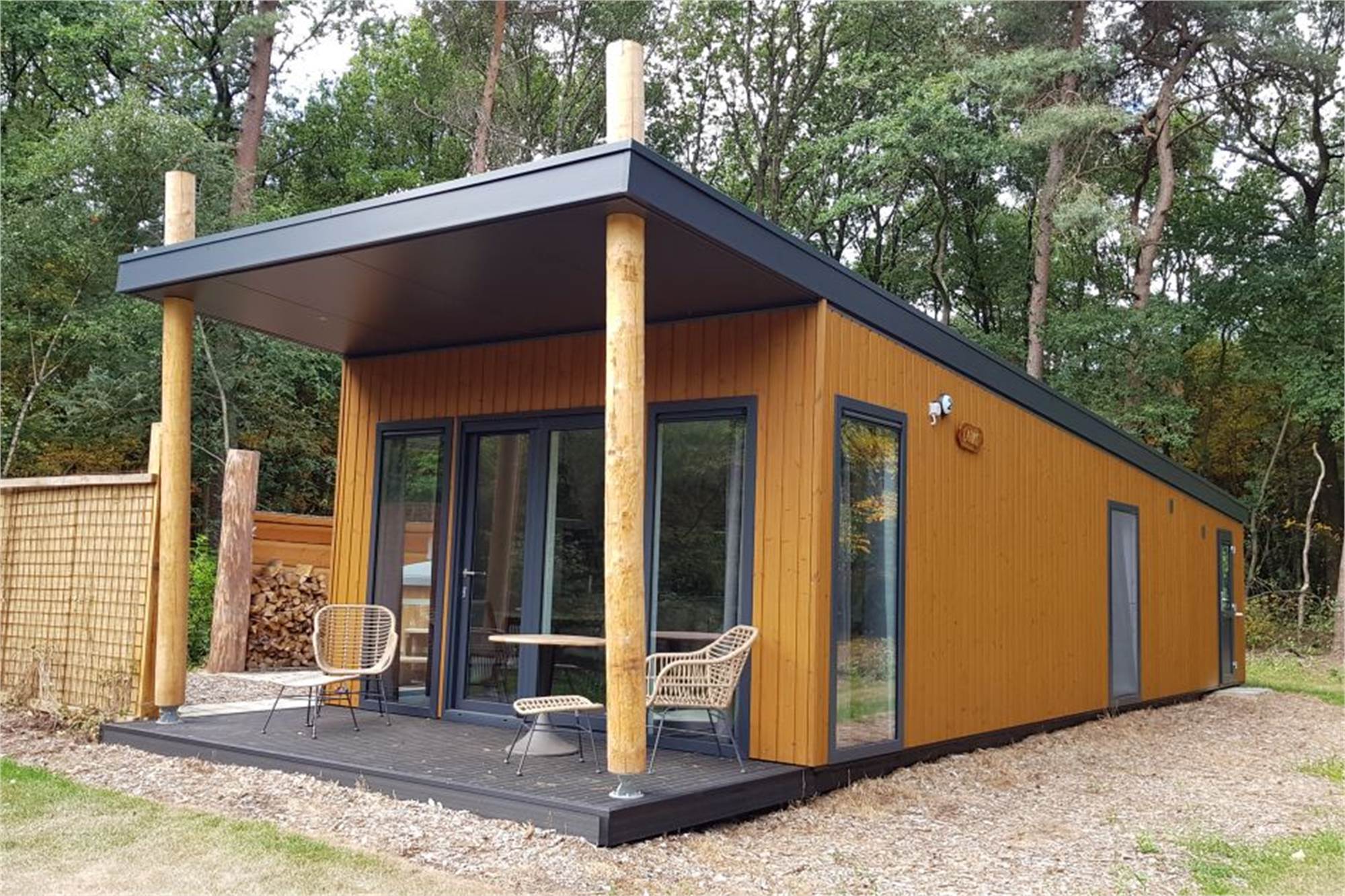 This single-storey bungalow sleeps 6 and has a living room with seating area and a smart TV. The kitchen includes a dishwasher, a combination microwave and a fridge with a freezer compartment. It has both a coffee pad machine and a filter coffee machine. There are 3 bedrooms, 2 with 2 single beds and 1 with a bunk bed. The bathroom has a walk-in shower and there is a separate toilet. The lodge has a garden with a veranda and a covered terrace with patio furniture. Parking space is available for 1 car at the lodge, and you can make use of the free Wi-Fi.
