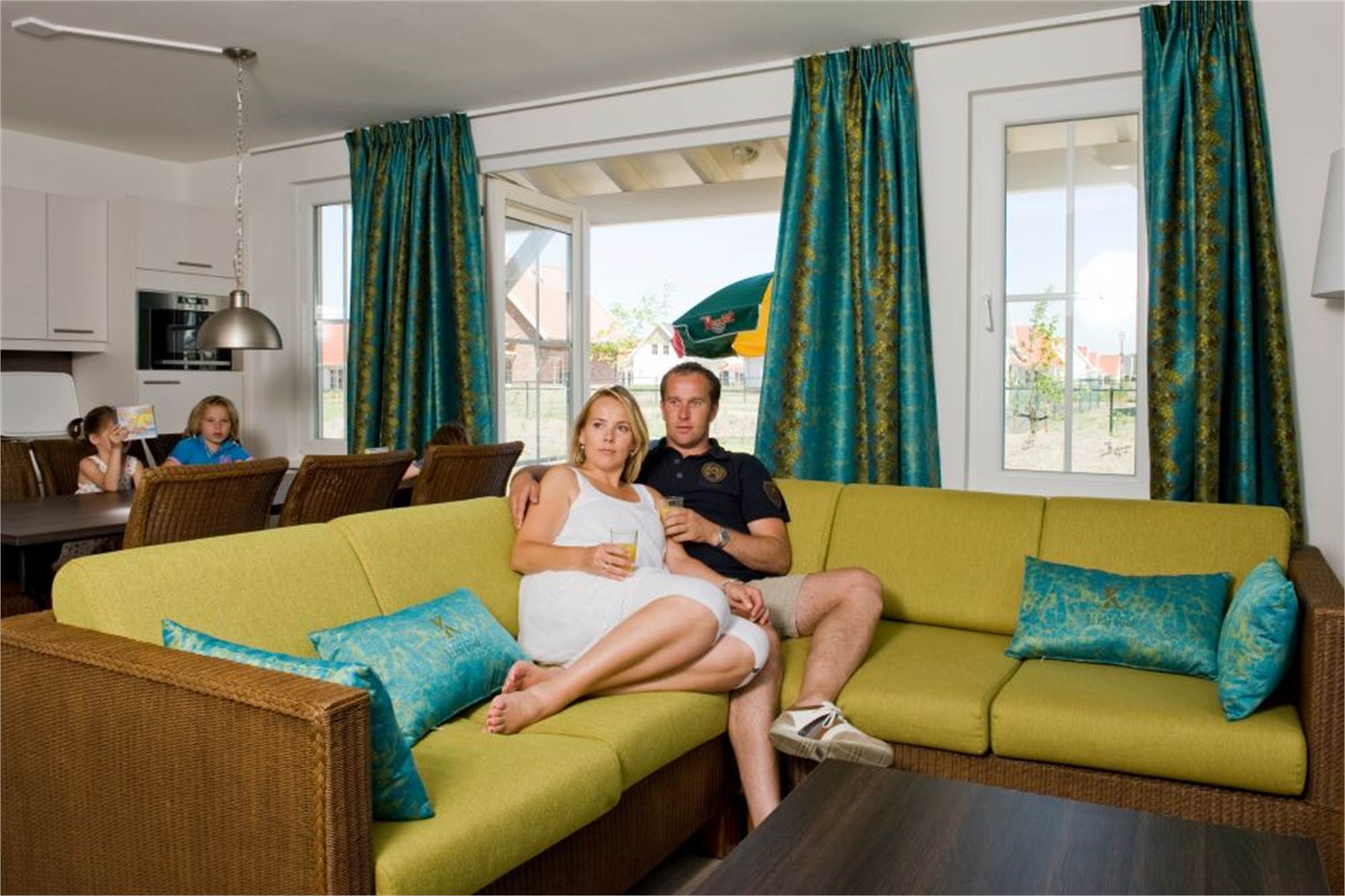 This detached luxury villa at Résidence Klein Vink is suitable for six adults and one infant/toddler. The entrance hallway brings you to the sunny living room with French doors to the terrace. The kitchen is equipped with top-range built-in appliances, including a dishwasher. On the ground floor is a bedroom with two twin beds and a washbasin. Upstairs are two attractive bedrooms, both with two twin beds. One of the upstairs bedrooms has an extra child's bed. Enjoy the comfort of two bathrooms, one of which has a bathtub, and the other a sauna. There are separate toilets on both floors. There is also a washing machine and a dryer in the storage room. You will also find a high chair, playpen and baby bath in the villa, and can rest assured that the safety of your child has been taken into consideration. Wi-Fi is available free of charge.