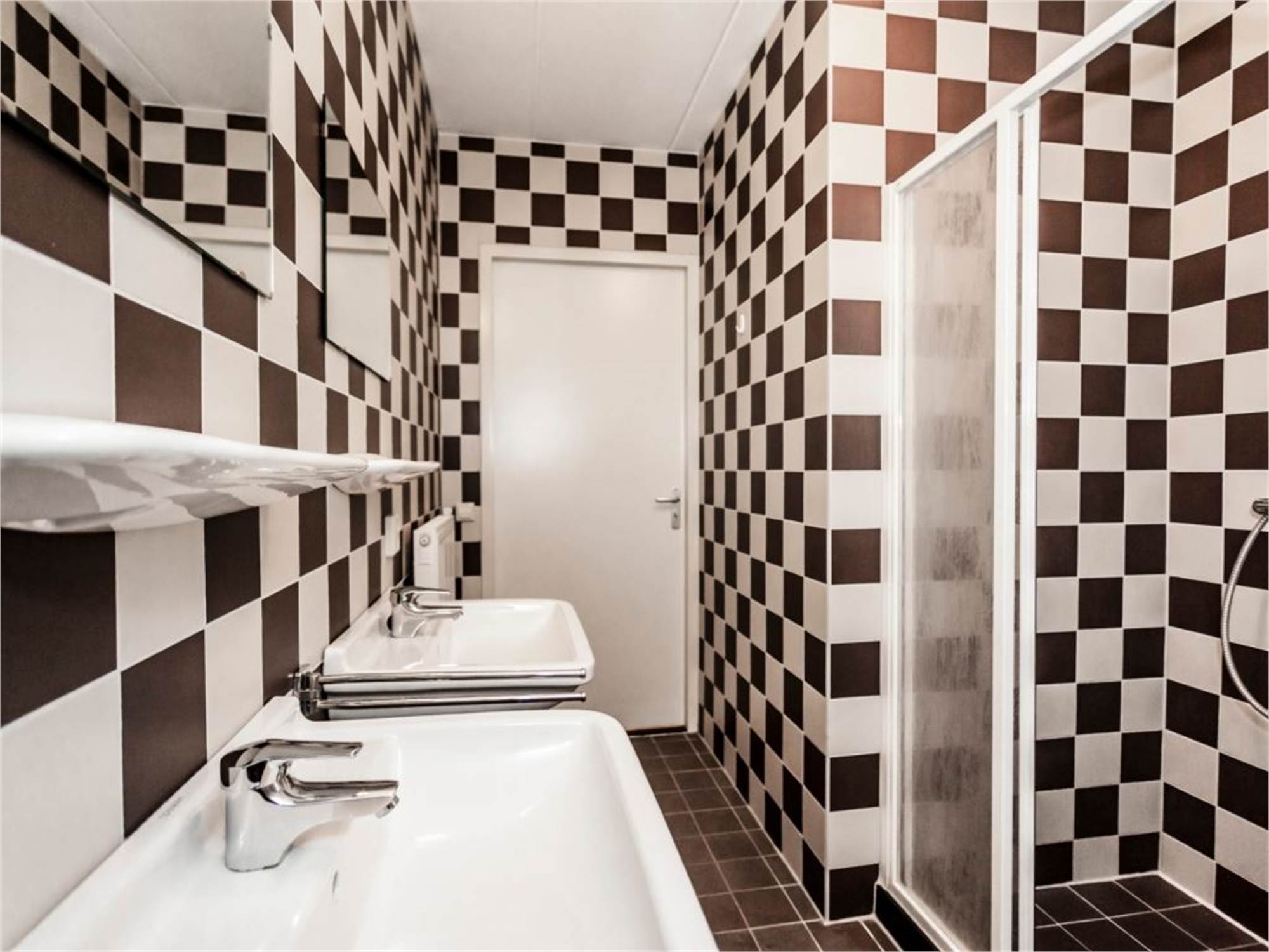 Bathroom with shower cubicle and double washbasin