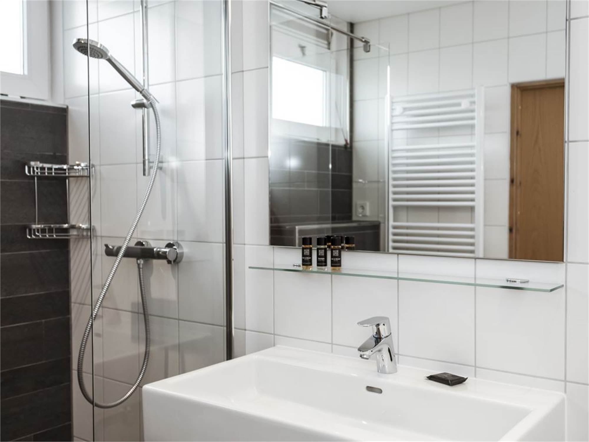 Bathroom with shower cubicle and washbasin