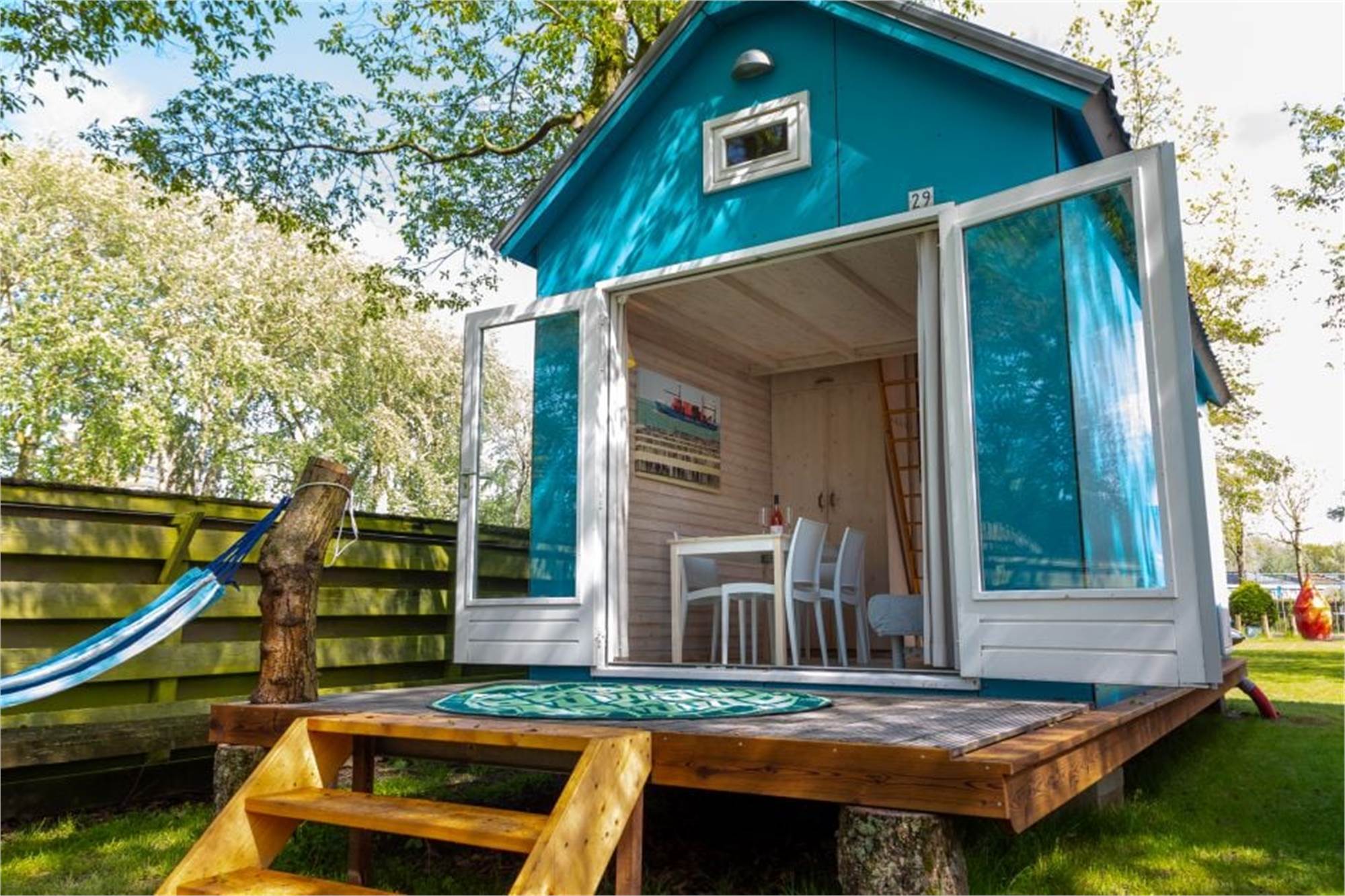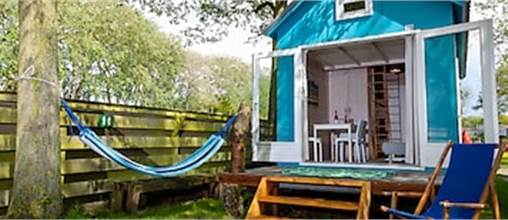 This tiny house for no more than 2 adults is located near the beach, and intended for serious campers. The house has a seating area, and the kitchen includes a fridge with freezer compartment and a 4-burner hob. The house has 1 bunk bed for with 2 single beds. The bathroom has a shower cubicle and a toilet. It has patio furniture too, and you can use the park's free Wi-Fi.