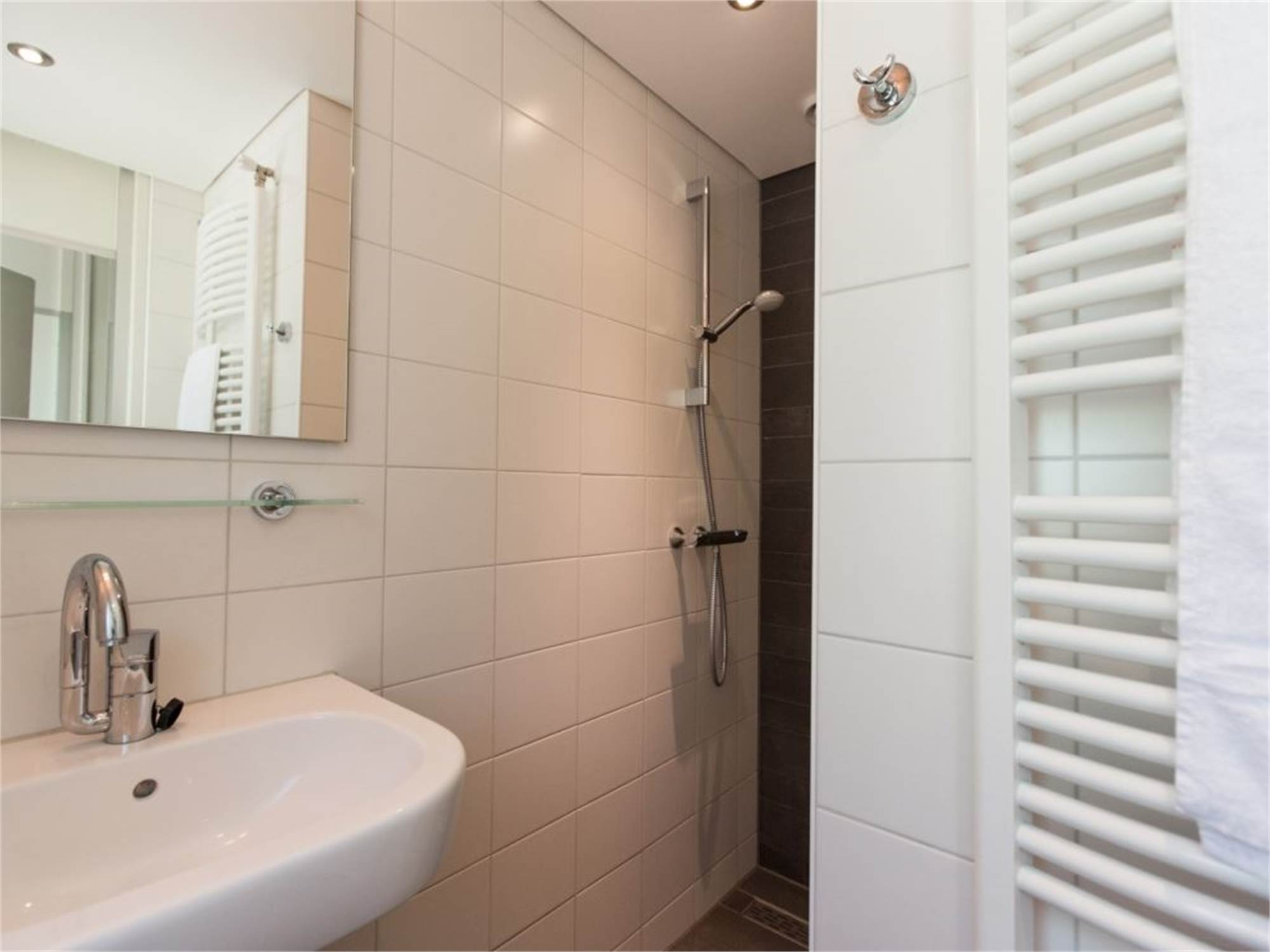 Bathroom with shower cubicle and washbasin
