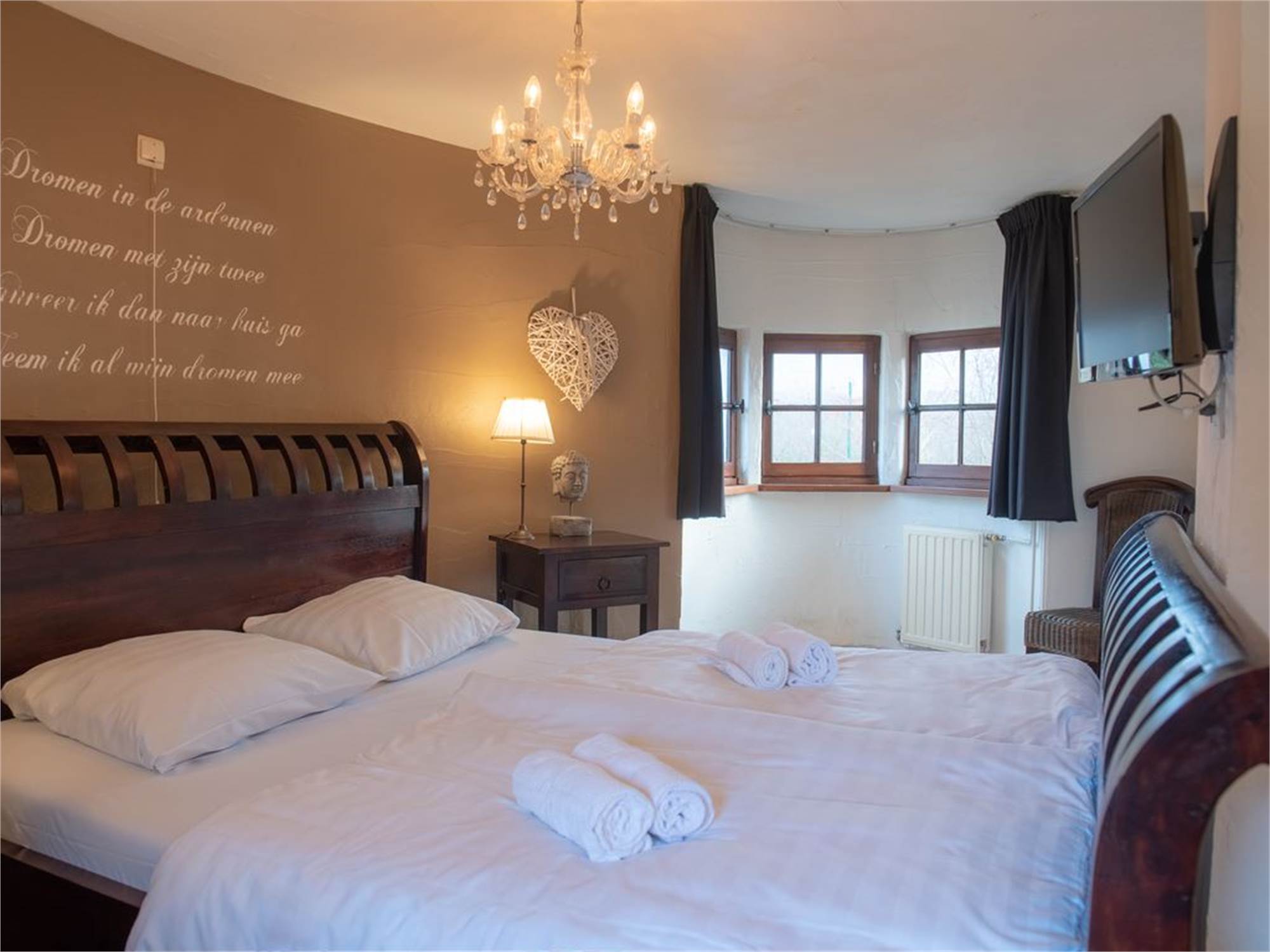 Bedroom with two single beds situated on the first floor