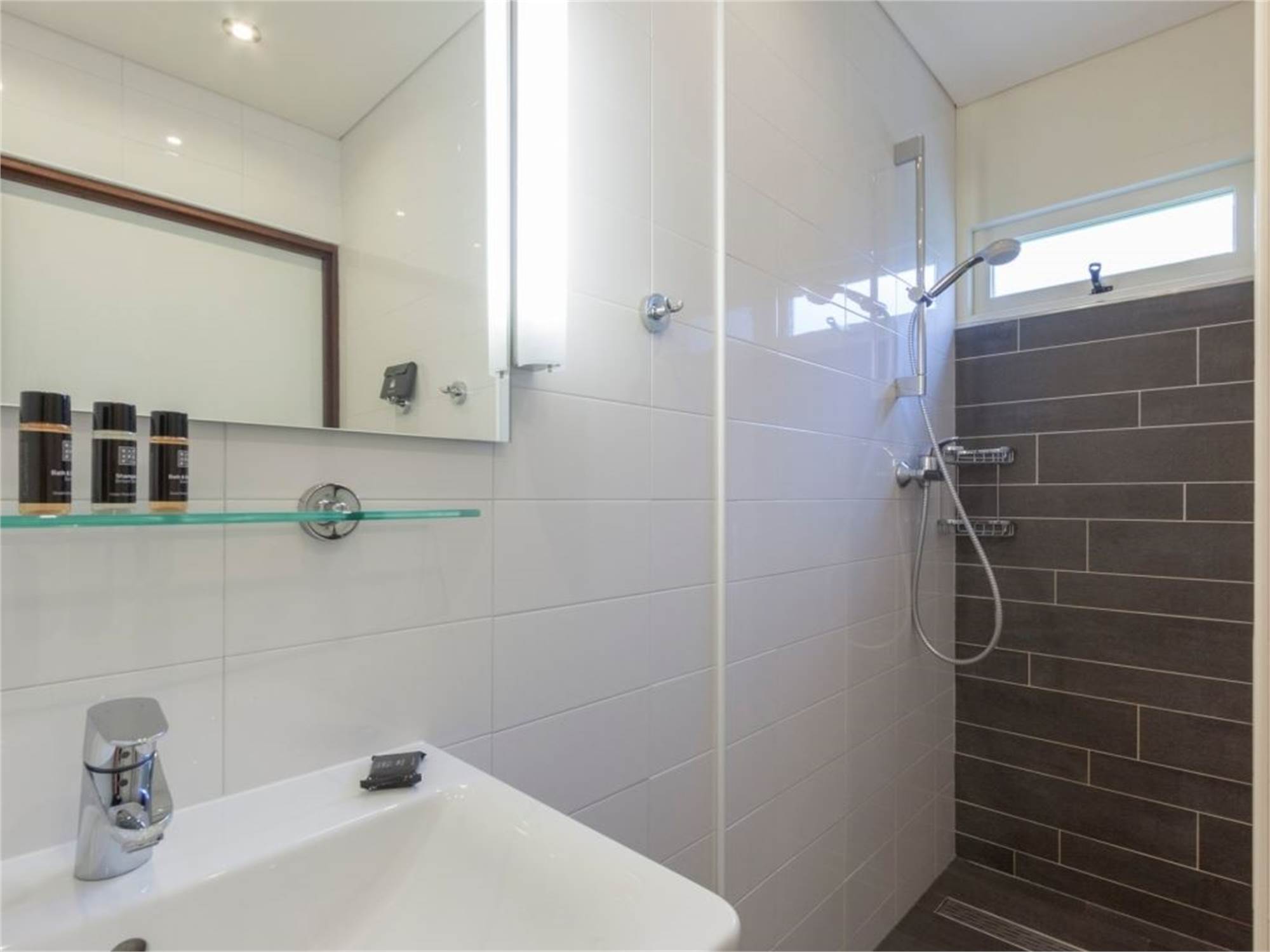 Bathroom with shower cubicle and washbasin