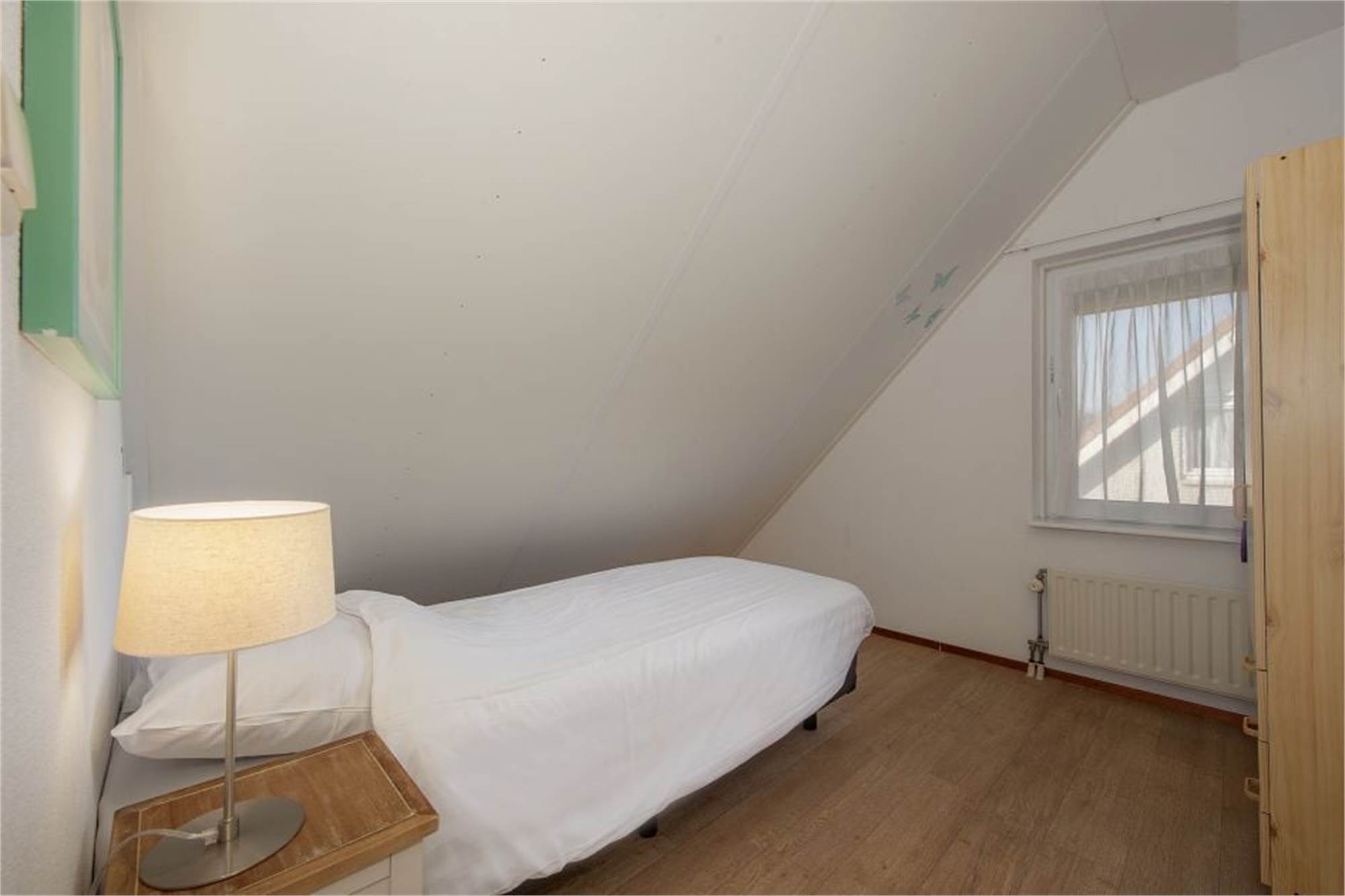 This detached bungalow is suitable for 6 persons. Downstairs you will find a bathroom with a shower and a bath shower. The hallway has a separate toilet. The upstairs has 4 bedrooms, all with single beds. The bungalow has a patio with furniture and free use of Wi-Fi.